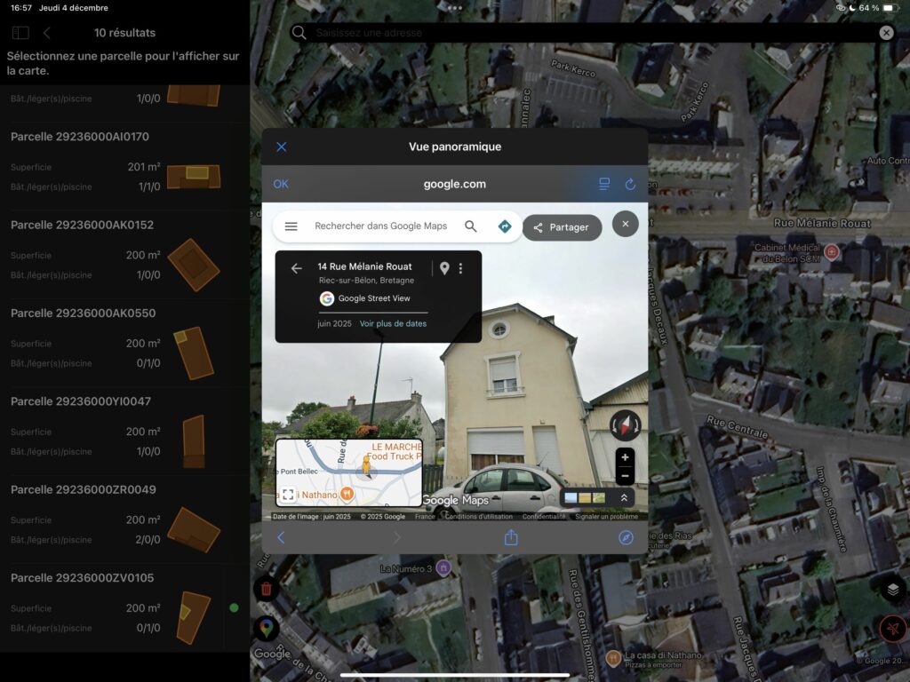• l’application COO, très utile pour localiser une maison, identifier son adresse et estimer la superficie du terrain.